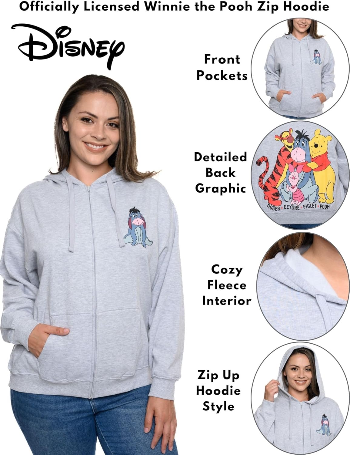Disney Zip Hoodie Eeyore Winnie The Pooh Piglet Tigger