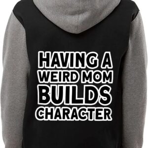 The good quality fabric of Having a Weird Mom Builds Character Varsity Hoodie is soft and comfy to wear all day. No itch, no smell. Cool Zip Hoodie features long sleeves, two pockets, and hood, easy to pair with everyday wearing. It is suitable as a gift and to wear for daily occasions like home, gym, street, party, office and etc. Thanks to the unique print on the back Funny Hooded Sweatshirt will never be out of date.